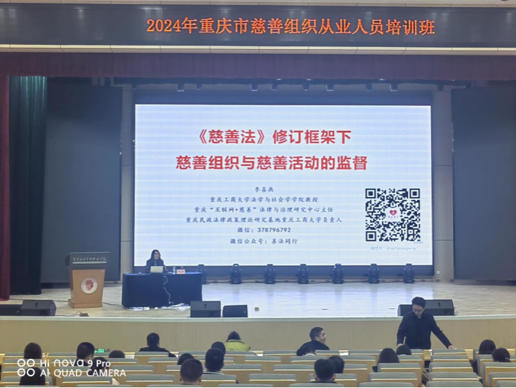 2024年11月13日上午,重庆“互联网+慈善”法律与治理研究中心主任、重庆廉政与审计治理研究中心研究员、ok138cn太阳集团李喜燕教授以“《慈善法》修订框架下慈善组织与慈善活动的的监督”为题进行讲座,讲座在重庆市城市管理职业学院学术报告厅进行,来自重庆市民政系统和慈善组织130余家共计180余人参加了培训。