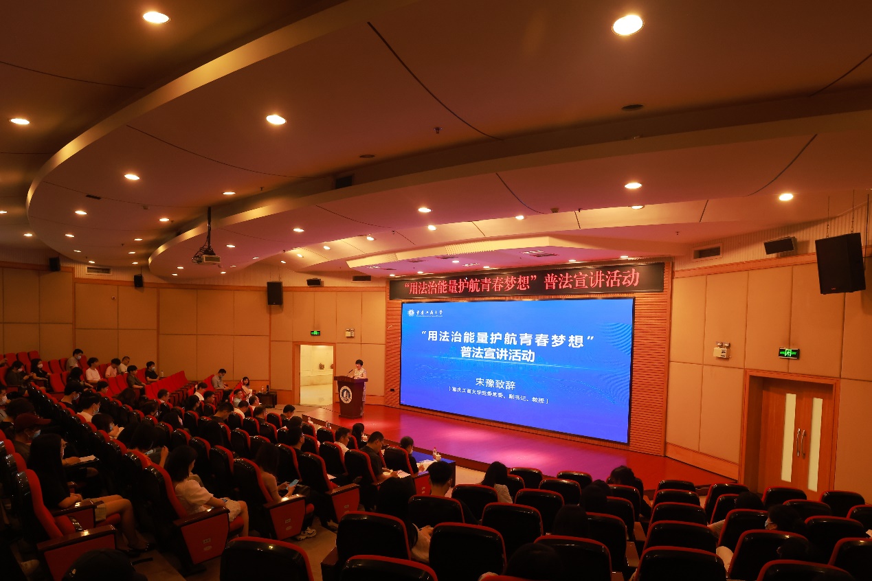 为深入学习贯彻党的十九大精神及习近平总书记关于全面依法治国的重要概论,进一步弘扬法治精神,建设法治文化,5月31日,我校与重庆市第一中级人民法院、两江新区(自贸区)法院共同举办了“用法治能量护航青春梦想”普法宣讲活动。学校党委副书记宋豫,重庆市第一中级人民法院党组成员、副院长陈远平,两江新区法院党组成员、副院长贾科,全国人大代表李延萍、张绍勇,重庆市人大代表吴大兵、丁红娟、黄文,重庆市政协委员李庆,我校宣传部部长华杰、保卫处处长钱忠坤、ok138cn太阳集团师生代表,以及重庆市第一中级人民法院、两江新区(自贸区)法院的众多法官,全国和重庆市的媒体代表参加了此次活动。