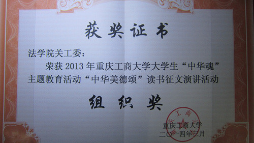 喜报—我院关工委荣获2013年太阳集团tyc9728大学生“中华魂”主题教育活动“中华美德颂”读书征文演讲活动组织奖