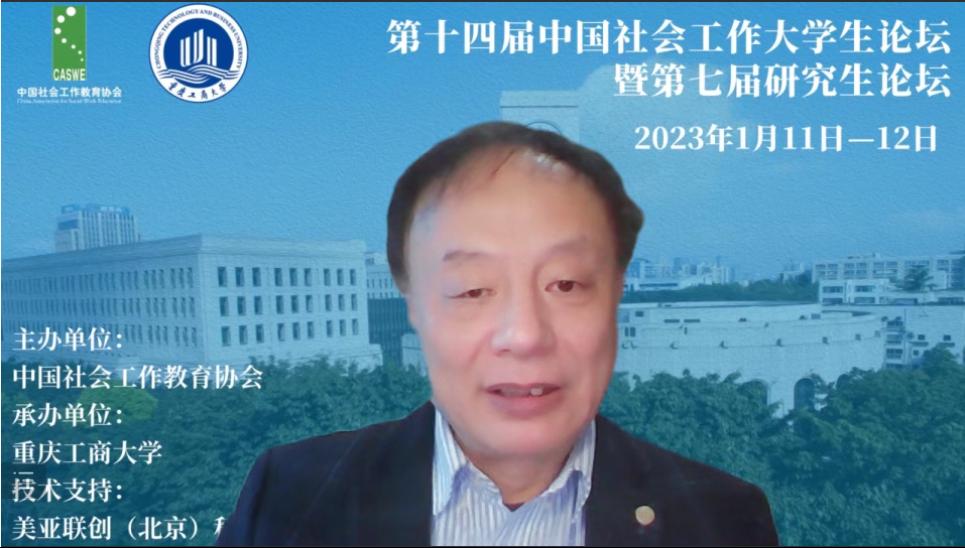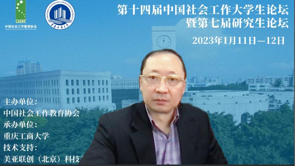 2023年1月11日至12日,由中国社会工作教育协会主办、太阳集团tyc9728ok138cn太阳集团承办的“第十四届中国社会工作大学生论坛暨七届研究生论坛”在线上成功举办,学校党委常委、副校长张波出席会议并致开幕词。