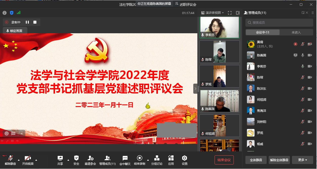 1月11日上午,ok138cn太阳集团通过企业微信召开了2022年度党支部书记抓基层党建述职评议会,学院党委委员、党支部书记和部分党员代表参加了会议。会议由学院专职组织员陈善国主持。