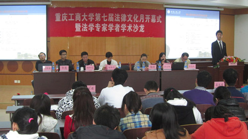 开幕式结束后举行了首届法学专家学者学术沙龙。学院四位专家学者分别就自己最新的研究成果进行了主题讲座。学校法律顾问、学院法学专家张忠民博士作了题为《中国转基因食品安全法律规制热点问题》的讲座;知识产权专家、日本北海道大学访问学者杨和义教授作了题为《中日职务法律专利制度比较》的讲座;重庆市民法、经济法、国际经济法研究会副会长、研究生导师华鹰教授作了题为《专利池构建与运作模式探讨》的讲座;中国政法大学博士后袁维勤博士作了题为《政府购买养老服务之探讨》的讲座。同学们认真聆听了此次学术沙龙。