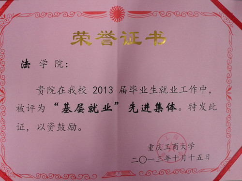 我院在我校2013届毕业生就业工作中被评为“基层就业”先进集体