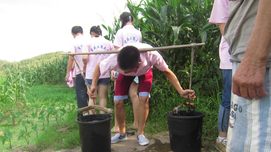 社会实践团成员为一农户爷爷挑水