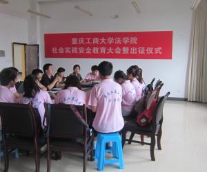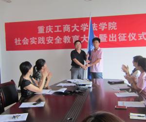 法学院2013年暑期社会实践团将奔赴重庆市垫江县开展为期5天的“三下乡”活动。7月1日中午,我院分团委在慧智楼学院会议室举行2013年暑期“三下乡”社会实践安全教育大会暨出征仪式。出席会议的有学院党总支书记李自维、院长杨和义、副院长刘勇、学团办主任林细妹以及此次社会实践团成员。会议由分团委书记杨婷主持。