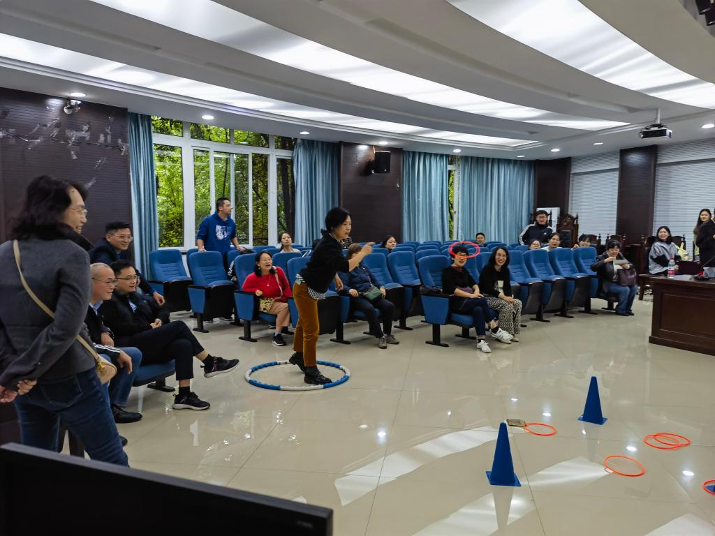 本次活动在学院模拟进行,老师们站在指定位置将塑料圈扔出并套住投掷筒获得积分,并通过积分多少确定比赛名次。活动开始后,老师们踊跃排队进行比赛,现场气氛十分热烈。