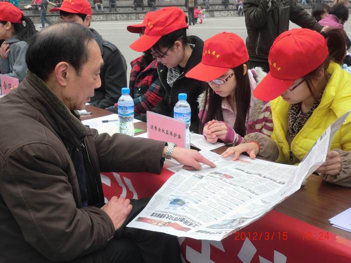 为纪念“315”国际消费者权益保护日,弘扬法治精神,3月15日,法学院30余名师生在院长华鹰、党总支副书记李丽莎的带领下,前往南坪宏声文化广场,开展“消费与安全”主题宣传活动,并得到了很好的社会反响。