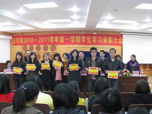 乘着希望之风,大会进入了第一个流程,分别就荣获“课堂学习 标兵”、“单科学习标兵”、“学习进步标兵”、“好笔记”、“第八届‘天平杯’法学论文大赛”获奖的同学以及“模拟法庭大赛”获奖的班级给予了表彰并举行了颁奖仪式,肯定了大家在2010―2011学年第一学期所取得的突出成绩,希望大家再接再厉为自己争取更多的荣誉,为学院增添更多的光彩。