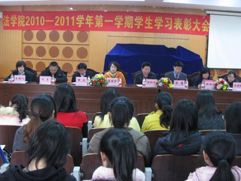 3月11日下午,法学院在慧智楼90426教室成功召开了2010―2011学年第一学期学生学习表彰大会。法学院党总支书记杨和义教授、院长华鹰教授、党总支副书记李莉莎副教授、副院长黄文教授,民商法系系主任岳树梅副教授、经济法系系主任赖昶宏副教授、实验实习教研室主任刘勇副教授以及优秀学生代表出席了本次大会。此次会议由法学院学团办副主任林细妹老师主持。
