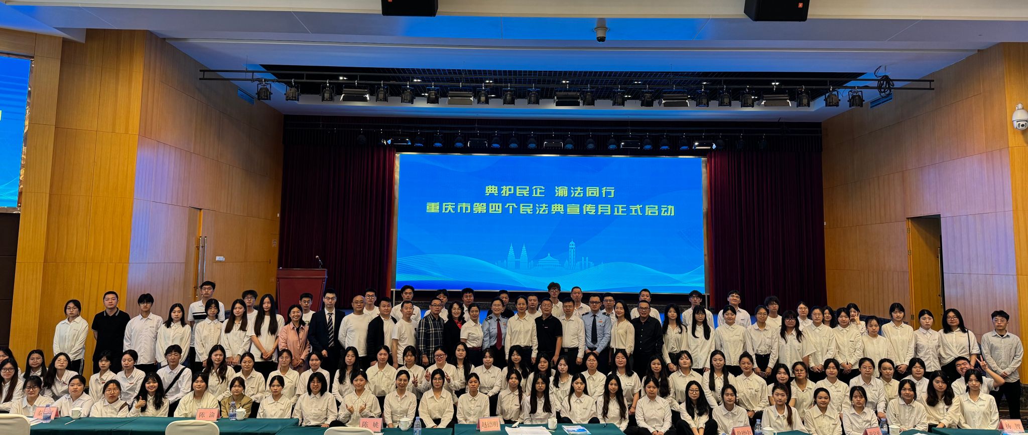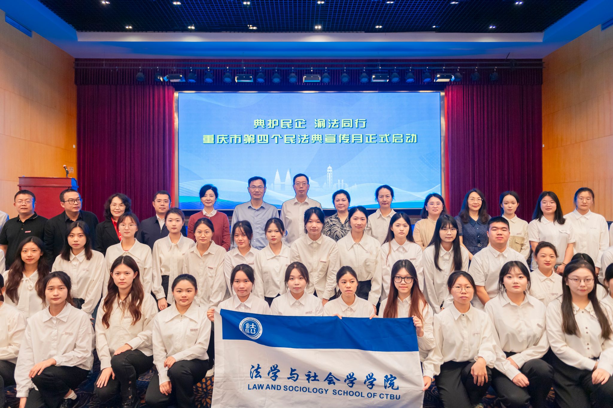 5月9日上午,校团委书记吴佑波、法社学院党委书记李莉莎及专业教师李喜燕教授携79名法社普法志愿者参加市委宣传部、市司法局、市普法办、市税务局等单位主办的重庆市2024“典护民企,渝法同行”主题宣传月活动启动仪式。