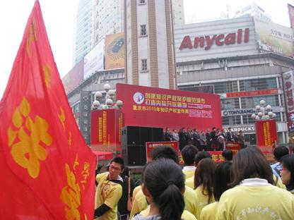 4月20日上午,法学院30余名师生在院长华鹰、党总支副书记李莉莎的带领下参加了重庆市政府在渝中区解放碑中心广场举办的“创建知识产权保护模范城市,打造内陆开放高地――重庆市2010年知识产权宣传周”启动仪式。