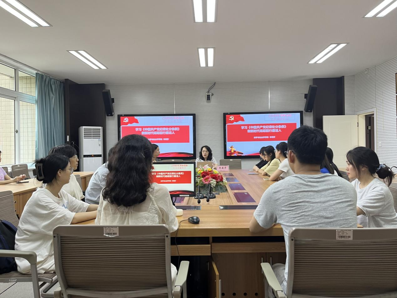 6月19日下午,ok138cn太阳集团党委书记李莉莎在慧智楼90429会议室为学院全体毕业生党员开设了一堂题以“学习《中国共产党纪律处分条例》 做新时代砥砺前行廉洁人”为主题的党纪学习教育党课,党课由学团办主任何祖润主持。