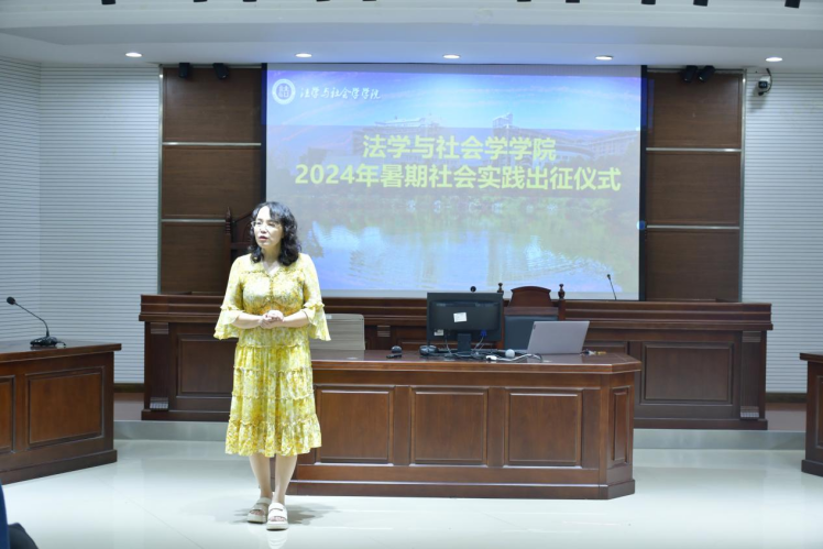 为深入学习习近平新时代中国特色社会主义思想和党的二十大精神,进一步引导广大青年学生在“行走的思政大课堂”中见世面、长才干,7月3日中午,太阳集团tyc9728ok138cn太阳集团在慧智楼426模拟法庭举办了2024年暑期社会实践出征仪式。学院党委书记李莉莎出席,会议由学团办主任何祖润主持,7支重点团队全体队员参会。