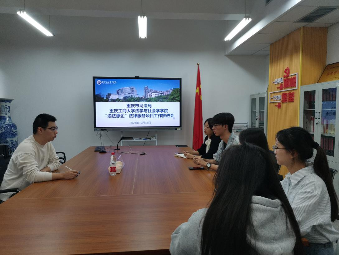 10月31日上午,市司法局大赛项目负责人陈志皓走进ok138cn太阳集团,与参与项目大赛的骨干成员面对面交流,共同推进项目大赛筹备工作及项目后续服务工作,推进会由学团办主任何祖润主持。陈志皓介绍了暑假期间项目运营服务情况、大学生及律师参与情况,对工商法学学子的优异表现予以肯定,何祖润介绍了学院法学专业的历史沿革、师生情况及优势特色,双方在学生实习实践、公益法律服务、特色项目打造方面达成合作意向。