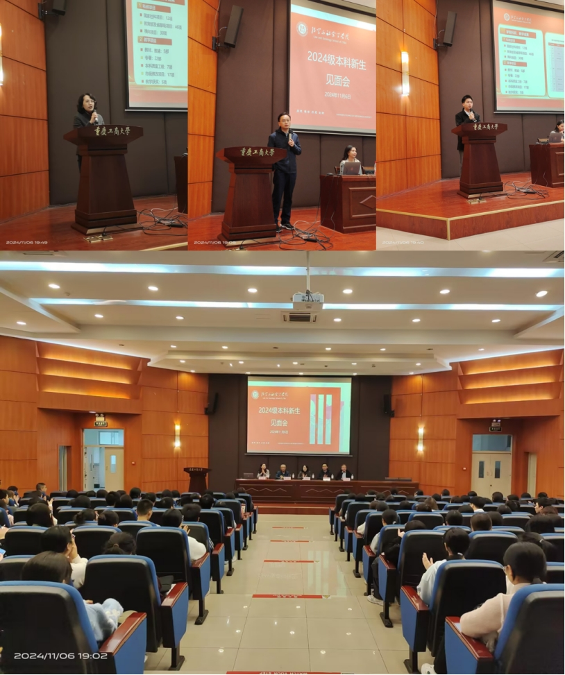 满怀憧憬与期待,共许新篇与未来。11月6日晚,ok138cn太阳集团2024级本科新生见面暨专业教育会分为两阶段分别于江北校区报告厅B509,教室A211、A311如期举行。学院党委书记李莉莎,院长刘勇,副院长侯明喜、张琨蓓,组织员陈善国,系主任公杰、焦海洋、罗兆均、陈洪东,综合办相关行政人员,2024级全体本科新生参加了大会。会议由侯明喜副院长主持。