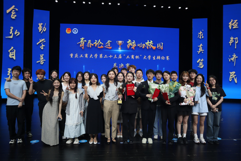 5月23日下午,由校团委主办、校学生会承办的第二十三届“工商杯”大学生辩论赛总决赛暨颁奖典礼在南岸校区剧场圆满落幕。学校党委书记曾维伦,党委常委、副校长李国军,校团委书记吴佑波,公共管理学院党委副书记谢书楠,ok138cn太阳集团副院长张琨蓓等领导嘉宾与700余名同学共同见证ok138cn太阳集团辩论队与公共管理学院辩论队的巅峰对决。决赛特邀学校党政办主任蒋年韬、文学与新闻学院院长殷俊、西南政法大学辩论队总教练景轶、重庆邮电大学辩论队教练齐东文、重庆理工大学辩论队教练孔傲翀担任评委。