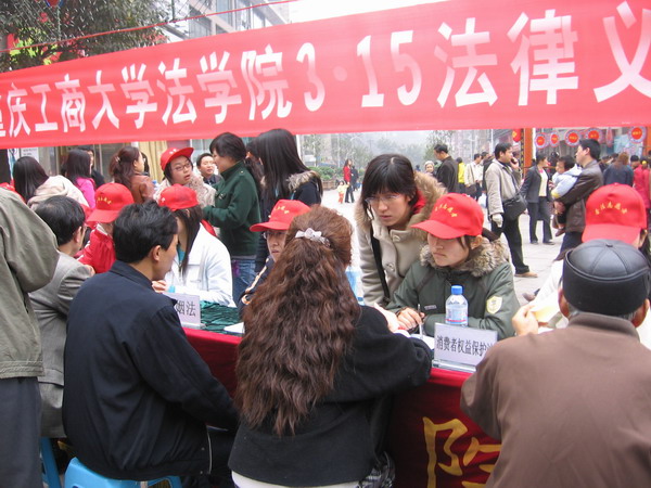 2007年3月15日上午,法学院组织近30余名师生,走上街头,在南坪步行街元旦广场开展3.15消费者权益保护法律义务咨询及宣传活动。