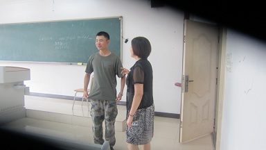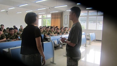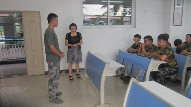 7月9日,军训的第四天下午,骄阳似火,同学们的户外训练因炎热的天气转为室内学习。法学院党总支书记李自维教授来到教室关怀同学并对全体学员做出了军训生活中的学习指导。