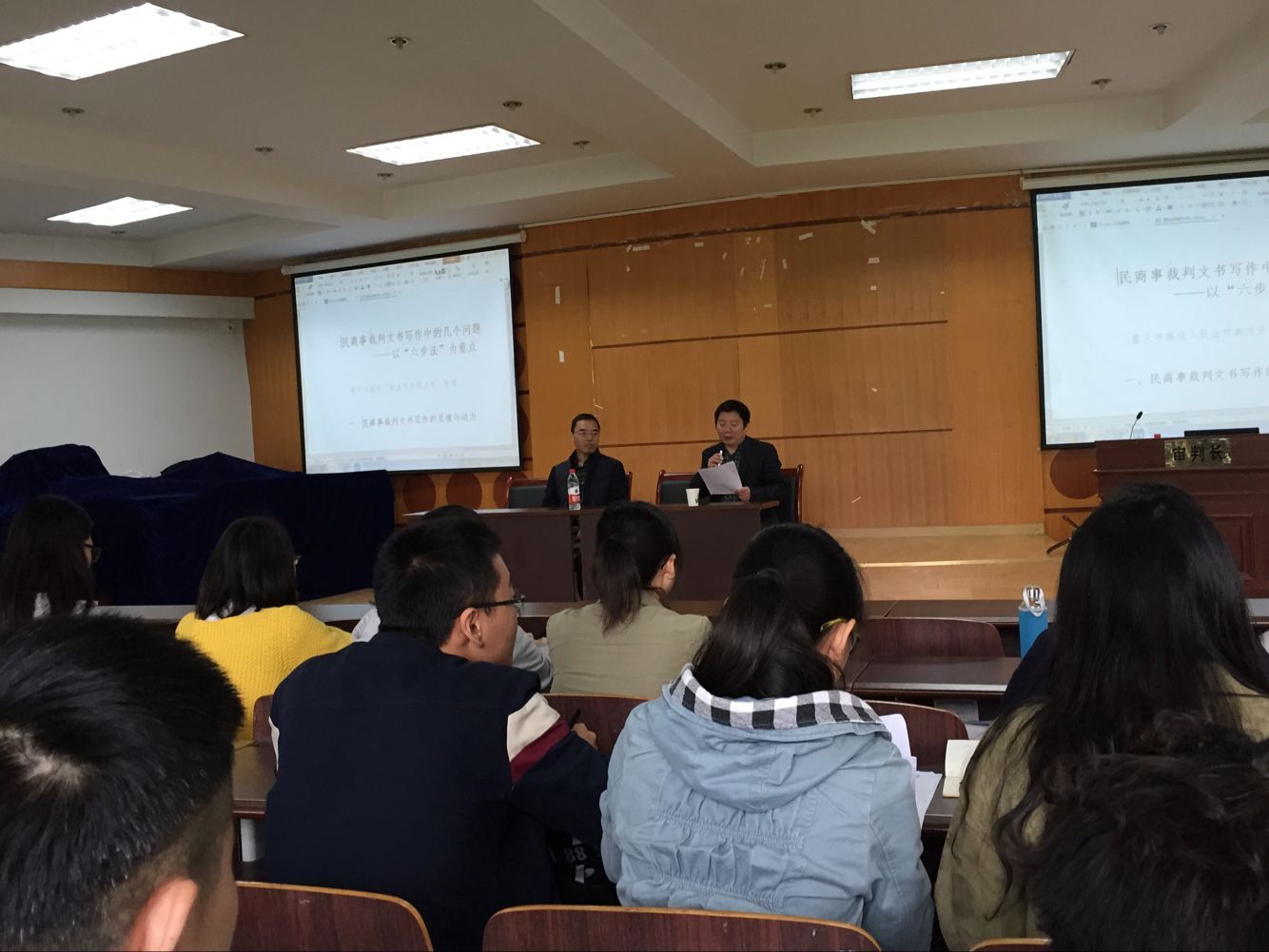 裁判文书写作是法律硕士和法学本科学生必须具备的基本能力之一,如何写好裁判文书是许多学生和职业人士认为困难的问题。为提高法律硕士和法学、知识产权专业学生的职业能力,法学院邀请从事民商事审判工作20余年、重庆市高级人民法院高级法官、审判监督庭审判长张超于2016年3月27日在惠智楼90426模拟法庭举行了实务讲座。法学院院长杨和义教授主持了讲座,法学院2015级法律硕士、法学和知识产权专业2013级学生共120人聆听了讲座。