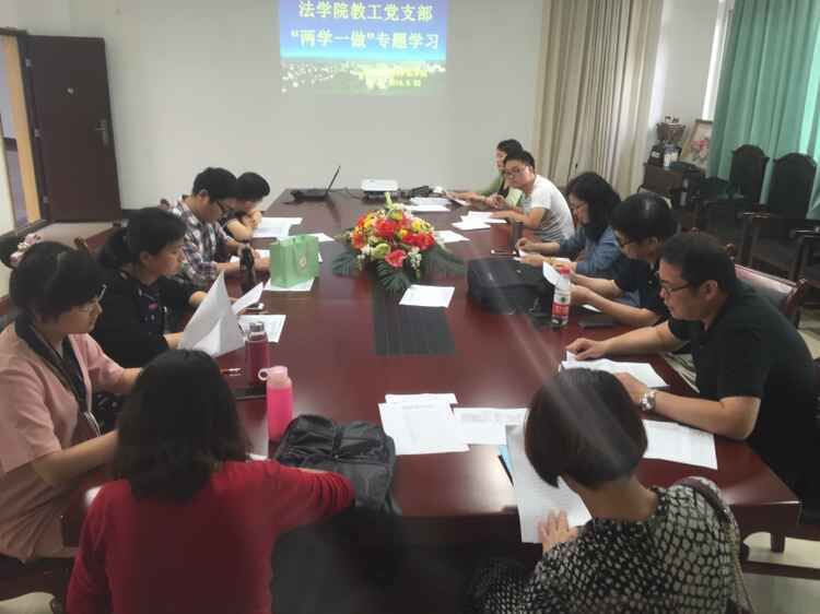 “两学一做”基础在学,关键在做。2016年5月20日下午16:00,法学院教工党支部在慧智楼90429会议室开展“学党章 遵党纪 炼党性”学习教育活动,全体教工党员参加了本次活动。