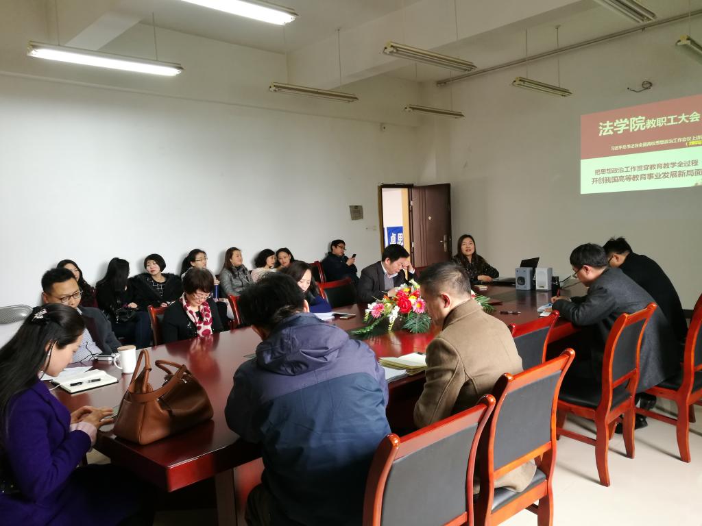 高校思想政治工作既是我国高校的特色,又是办好我国高校的优势,如何在法学院实际办学过程中突出思想政治工作特色与优势是值得每一位教育工作者深思的一项重要工作。为此,2017年3月17日下午,法学院组织全院教职工在慧智楼90429共同学习与讨论“习近平总书记在全国高校思想政治工作会议上讲话精神”,本次学习讨论由法学院党总支书记李自维教授主持。