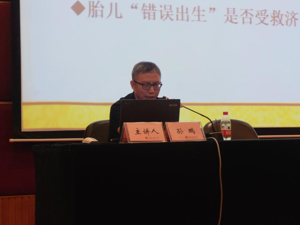 首先,孙鹏教授为大家详细阐释了中国民法典的时代意义:贯彻了全面依法治国的要求,适应了新形势新要求,全面系统地确定了我国民事活动的基本规定和一般性原则,《民法总则》是民法典的开篇之作,在民法典中起统领作用。然后,孙鹏教授从胎儿利益保护、被监护人自我决定权与利益最大化、失踪者利害关系人保护之强化、善意相对人保护之强化、信息化时代的权利、通谋虚假意思表示之效力等七个方面的内容、应用条例与条纹剖析,对民法总则的立法背景、条文创新和完善作了生动详细的介绍。孙鹏教授的专题讲座涉及的知识面广、针对性和实用性强,语言风趣幽默,获得了师生的一致好评。