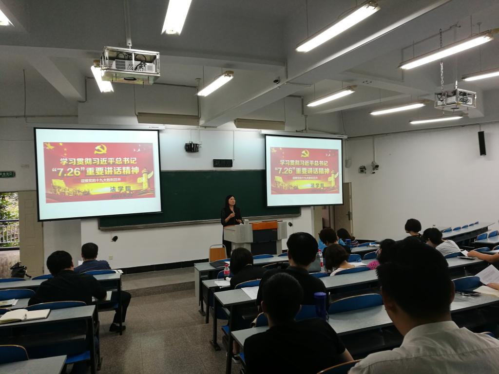 2017年9月22日,法学院在慧智楼90326教室召开全院教职工会议,以“迎接十九大和学校第三次党代会”为主题,并对教学评估中存在问题进行通报整改。学院党总支书记李自维主持了此次会议。
