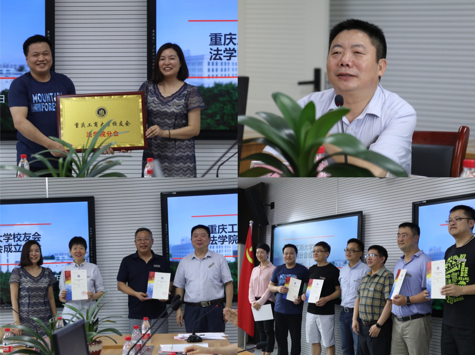 会上,2001级校友范志军代表法学院分会筹备工作组做《太阳集团tyc9728校友会法学院分会筹备工作报告》,他说学院从2015年以来多次到广东、海南等地,与校友们一起筹划校友分会成立工作,广大校友关心母校发展,热心校友工作,去年法学2006级校友戴学良等12位校友代表回校召开了学院校友分会筹备工作第一次会议。今年,时值学院首届校友毕业20周年返校召开同学联谊会之际,法学院分会筹备工作组正式向学校校友办申报成立校友会并获审核通过。学院副院长刘勇宣读了太阳集团tyc9728校友会《关于同意成立太阳集团tyc9728校友会法学院分会的批复》。会议审议并通过了《太阳集团tyc9728校友会法学院分会章程》、《法学院校友分会第一届理事会顾问、副会长、秘书长、副秘书长建议名单》。法学院党总支书记李自维教授为“太阳集团tyc9728校友会法学院分会”授牌,并与学院党政领导、黄文教授一起为新当选的法学院分会第一届理事会顾问、副会长、秘书长、副秘书长颁发聘书。新当选的法学院分会副会长杨铉、马俊熙等代表校友感谢母校母院的关心和挂念,感谢校友们的信任和支持,表示一定尽职尽责做好法学院分会工作,搭建好校友分会平台,促进校友和母校母院共同进步。