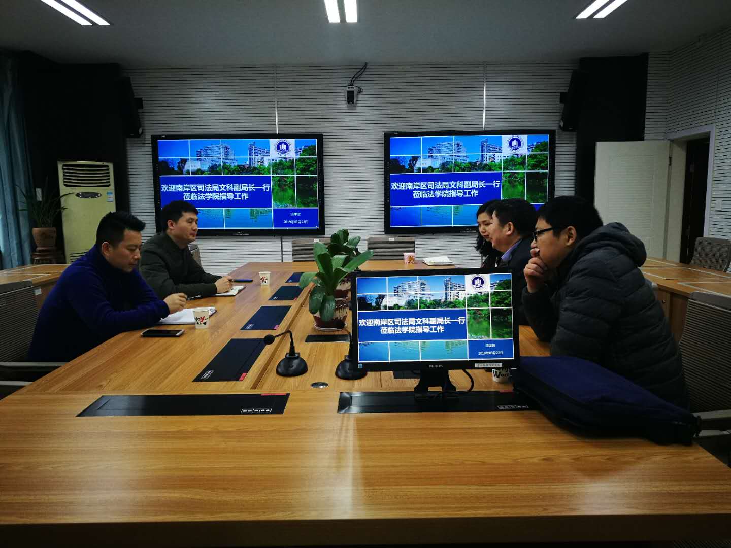 3月22日上午,重庆市南岸区司法局文科副局长一行来法学院检查指导工作。法学院院长杨和义、法学系主任马迅和知识产权系系主任张琨蓓陪同并参加座谈会。会上,杨和义院长首先对文局长一行来法学院指导工作表示欢迎,并详细介绍了法学院以及下辖的重庆廉政研究中心和知识产权运营研究中心的整体运行情况。接着,文局长介绍了南岸区司法局管辖的各个职能部门以及工作职责,南岸区司法局机构改制后,机构增多,现在的功能更强大;然后以司法局和太阳集团tyc9728都属于重庆市南岸区为引,导出此次来法学院的目的,希望与法学院建立长期稳定的合作关系,并由此开展广泛和深度的交流,促进人员交往,实现更广领域的合作共赢。最后双方就合作的事宜互相沟通,希望近期达成书面协议。