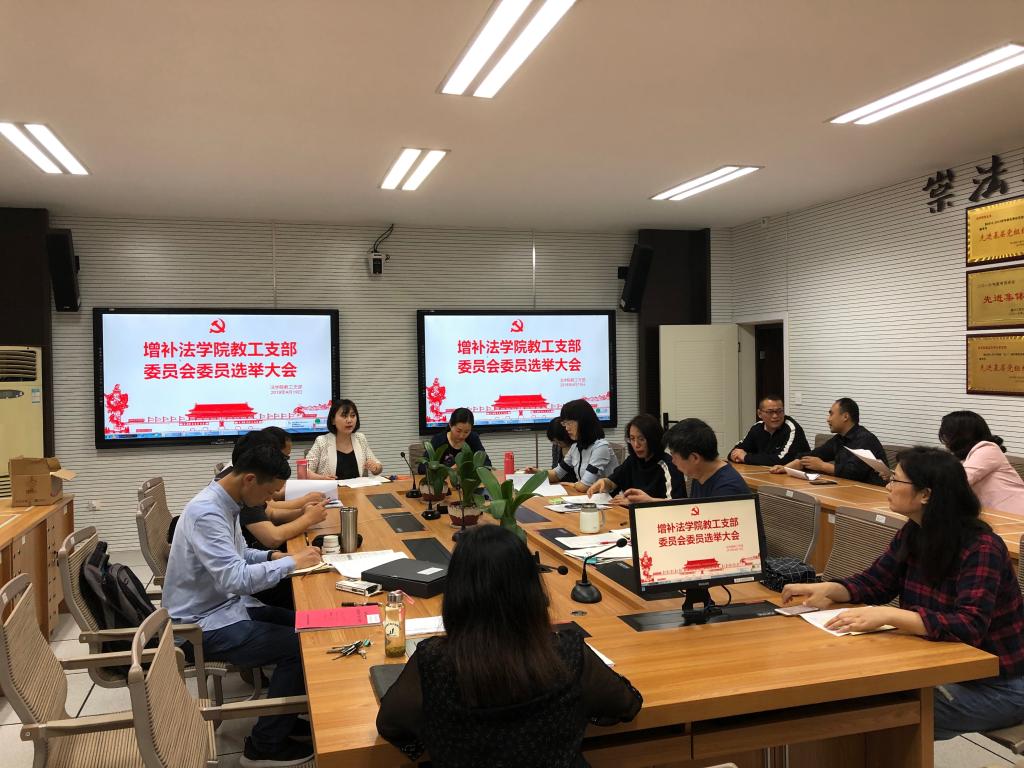 2019年4月19日下午,增补法学院教工支部委员会委员选举大会如期举行,共有22名教工支部党员参加了此次会议。