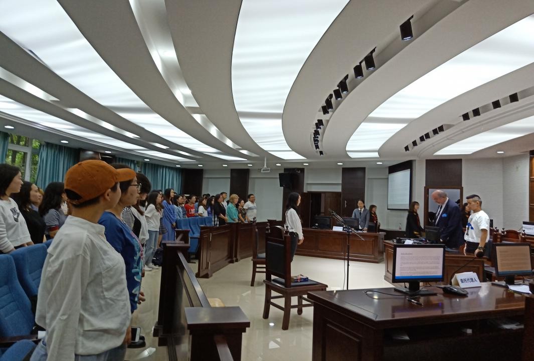 此次模拟法庭的两支队伍由法学院2017级四个班的志愿者组成,两个队伍分别负责一个模拟法庭的案件。他们由外教老师Edward Johnson带领指导,在历时近两个月的时间他们全力以赴,臻臻至至。在准备模拟法庭的过程中,老师和同学们共同对案件分析琢磨以及修改,经过庭审程序的认真排练,词句的仔细推敲以及发音的反复练习,都为展示更好的模拟法庭效果努力。他们认真听取老师的指导意见,悉心求教。每支队伍进行四次排练,起初,同学们因为担心语言的差异以及害怕理解不当而紧张不安,到后面敢于表达并且提出自己的想法。通过外教老师Edward Johnson亦师亦友的指导与帮助,每一次的排练同学们都轻松有趣地度过,并且了解到到不一样的文化以及对西方抗辩式诉讼模式有更深一步的体会。