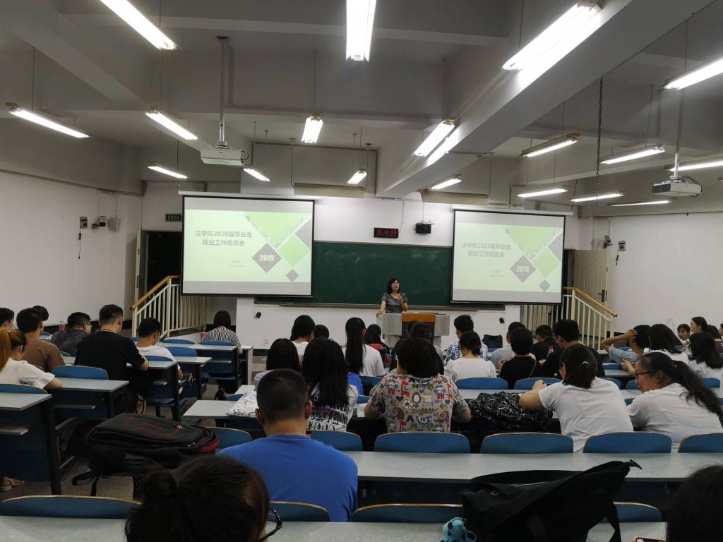 为加强对学生就业指导工作,让学生及时地了解、认识就业,做好职业规划和准备,法学院于2019年7月4日召开了2020届毕业生就业工作启动会。学院党总支书记李自维、院长杨和义、副书记林璐,2020届毕业生和辅导员参加会议。