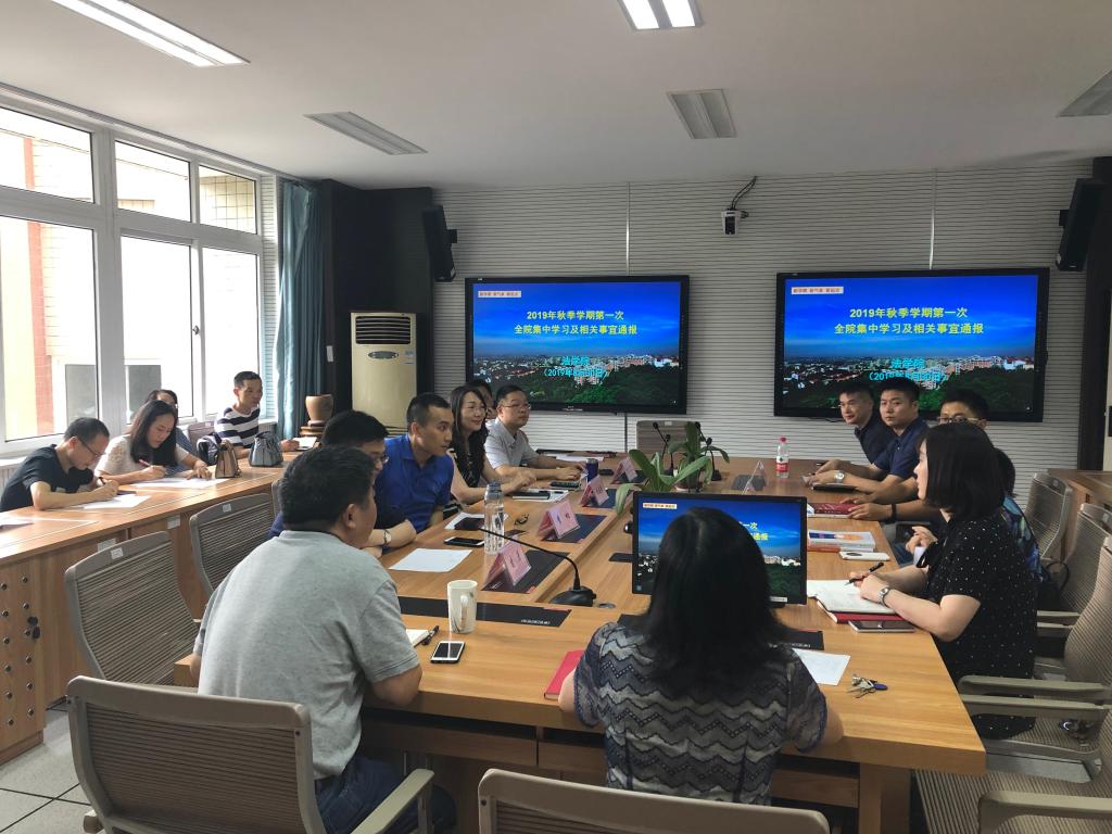 8月30日下午,法学院教职工在慧智楼90429会议室召开2019-2020年第一学期第一次全体教职工大会,学院全体班子成员和教职工参加了此次会议,会议由学院党总支书记李自维教授主持。