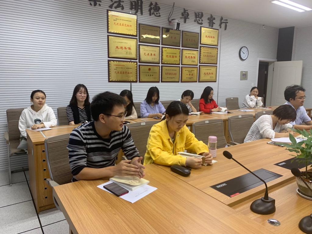 会议由支部书记罗观同志主持。第一项议程是法学院2019级研究生新生党员介绍,并根据支部现有组织架构对7位新生党员进行了党小组的分配。罗观同志强调新老党员们要在日常工作中互帮互助,一起进步,共同携手把本支部建设成一个富有战斗力和凝聚力的优秀党支部。