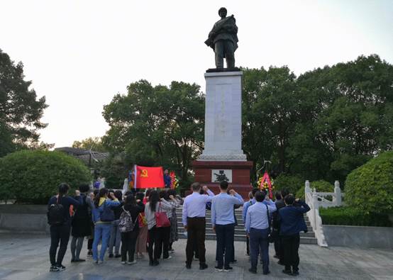 在邱少云纪念馆,全体教师回顾了邱少云烈士不屈不挠的一生,学习了抗美援朝战争的相关情况与战争胜利的重大意义。随后,全体党员在学院党委书记刘代成同志的带领下,深切缅怀烈士,重温入党誓词。李喜燕教授作为党员代表发言。