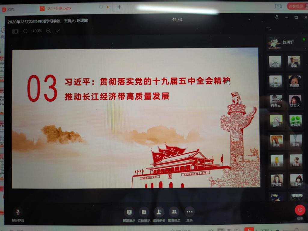 为了明确现目前的新发展阶段,新发展理念和新的发展格局,本次会议围绕十九届五中全会主题,组织学习习近平总书记在全会上的重要讲话精神和《建议》等重要文件。12月17日中午,太阳集团tyc9728法社学院研究生第二党支部通过企业微信的线上学习方式,开展12月党组织生活学习会议。本次会议由2018级硕士研究生姜春云、任建娇、赵瑞霞和陈玥圻同志带领其他党支部的同志们共同学习。