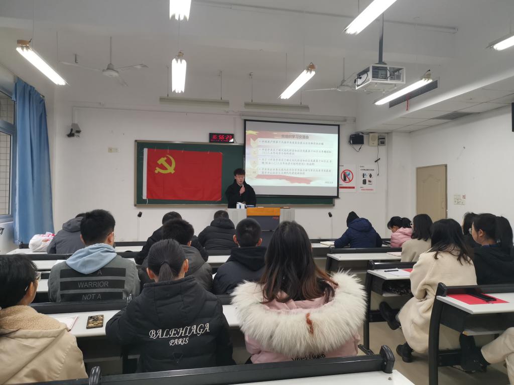 会议第二部分,2021年一月组织生活会由黄鑫宇同志主持并领学。首先,黄鑫宇同志领学了“中国共产党第十九届中央委员会第五次全体会议公报”“习近平法治思想有关文章”“学习习近平在气候雄心峰会上的讲话”“习近平向人类减贫经验国际论坛致贺信”四个方面内容,强调党员要时刻学习党的先进理论知识,学会自己领会并总结经验,并将其真正融入自己的生活实践中去。接着,全体党员同志一同学习了“习近平在全国政协新年茶话会上的讲话”“习近平二〇二一年新年贺词”,周思言同志谈到,作为青年党员,我们应当谨记党的每一段奋斗历史,更要把握未来,为党的事业添砖加瓦。最后,黄鑫宇同志还对“陈宝生在世界慕课大会上的讲话”“习近平总书记教育重要论述讲义”、《习近平谈治国理论》第三卷等内容做了深入介绍,号召支部全体党员同志不忘初心,砥砺前行,以最积极昂扬的姿态迎接即将到来的党的百年华诞。