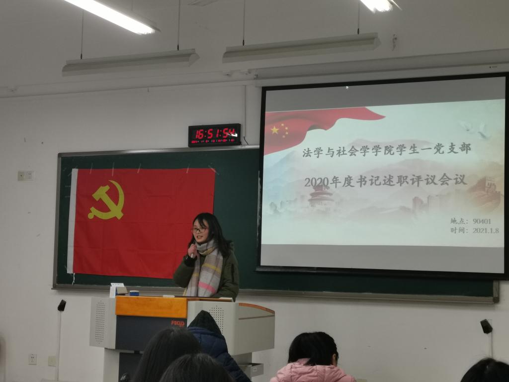 会议第一部分,2020年年度书记述职评议会由周思言同志主持。会议第一项议程,由学生一支部支部书记罗观同志进行年度述职报告。报告中,罗观同志对自己本年度的工作做了详细完整的梳理和总结,包括自己在本年度工作中取得的成效和不足,并在最后对下一年度的工作提出了新的改进措施,设立了新的工作目标。会议第二项议程,由与会党员填写“书记述职评议票”,对罗观同志的述职报告进行现场评议。