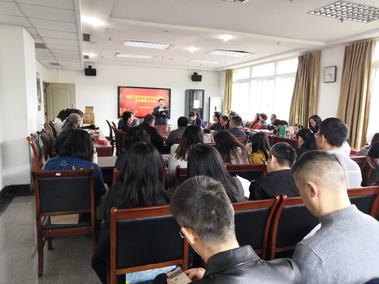 会上,黄文院长传达了学校中层干部会议精神,总结了近期疫情防控工作重点,强调了今年党政工作要点,并对学院开学各项工作进行了安排。学院党委副书记林璐总结了寒假期间开展工作的情况,指出了本学期党建工作、学生工作的重点。副院长刘勇强调了国家社科申报、学术会议举办、科研平台建设、研究生教育等方面的内容。副院长侯明喜介绍了一流专业建设、课程思政建设、教学成果奖申报、教师说课活动等工作。