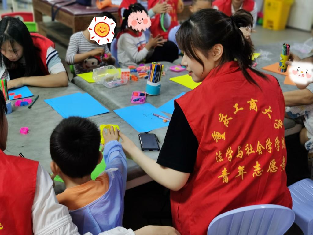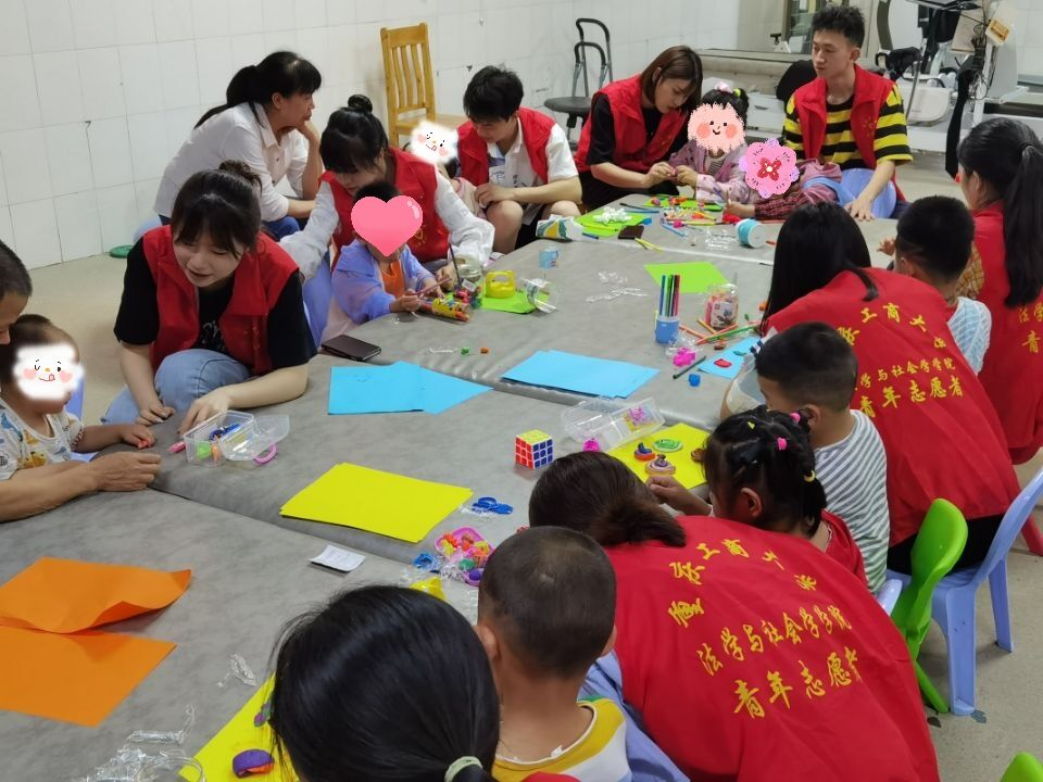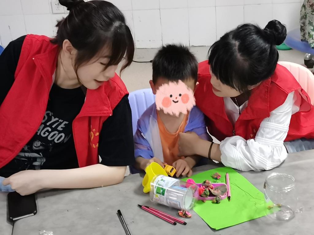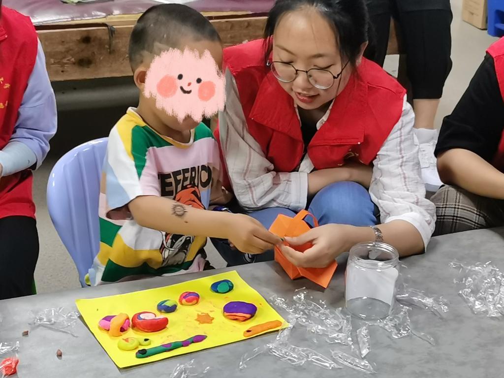 活动开始前,志愿者们在渝西医院活动室进行准备工作。等一切准备就绪后,志愿者一对一的将孩子们领进活动室正式开展活动。志愿者担起监护责任,协助孩童们进行活动,指导孩子们捏橡皮泥和手工折纸。活动中,志愿者与孩子们互动性高,志愿者引导孩子们积极参与到游戏中,活动室中充满着欢声笑语。活动接近尾声,孩子们与志愿者合影留恋。孩子们展露的天真可爱,是让志愿者们收获满足与坚持的信念。