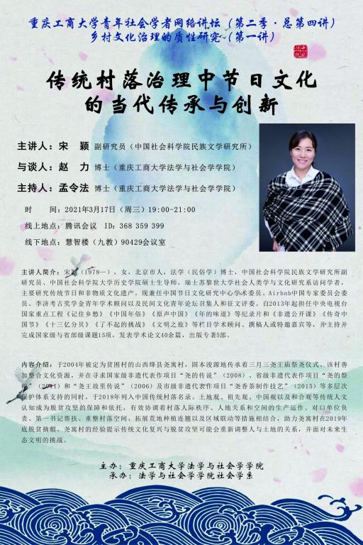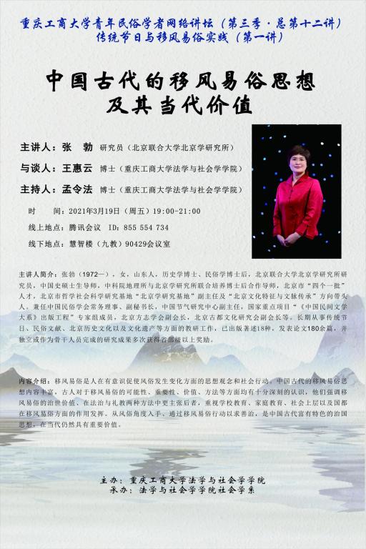 讲座预告:传统村落治理中节日文化的当代传承与创新;中国古代的移风易俗思想及其当代价值