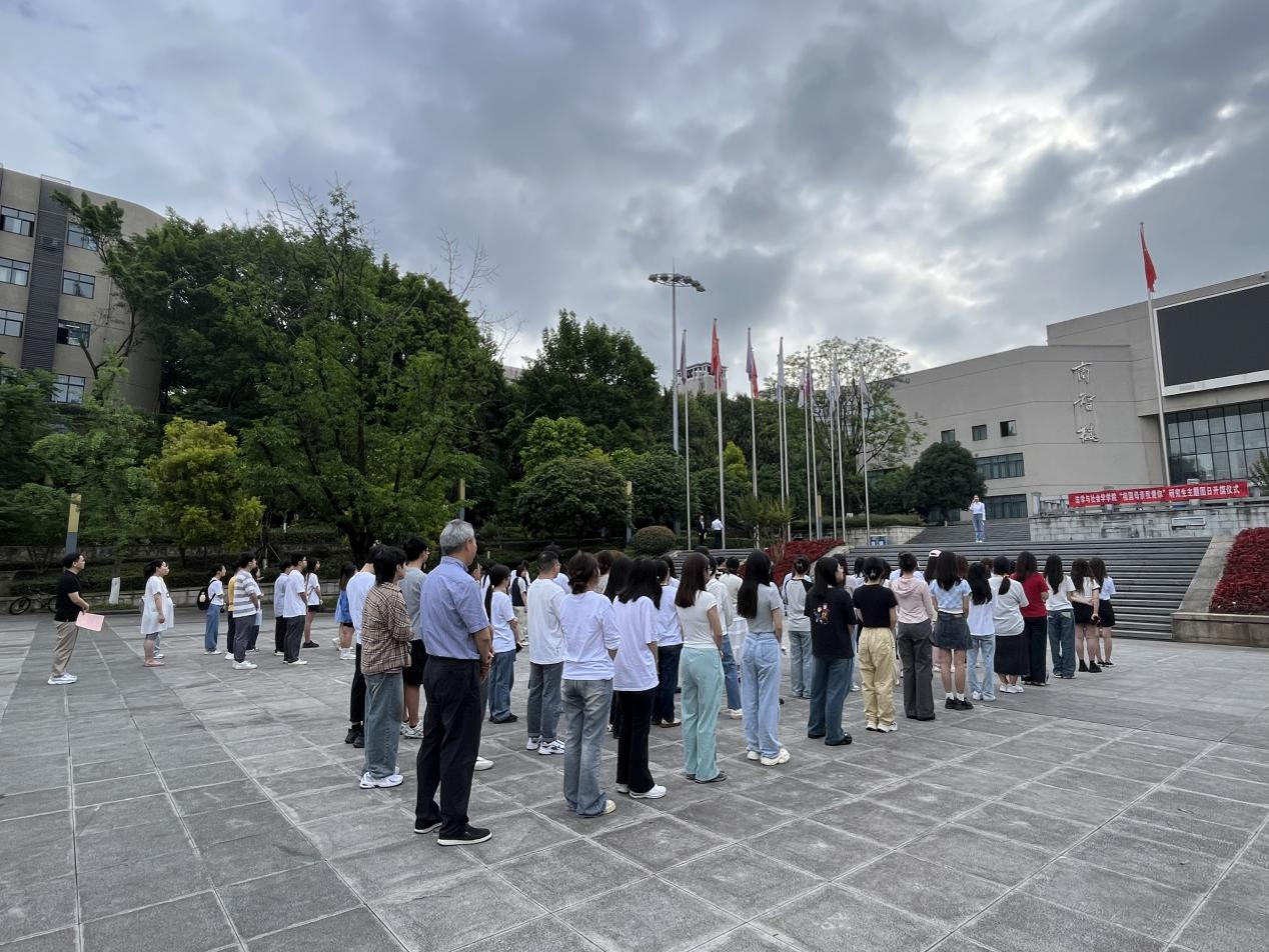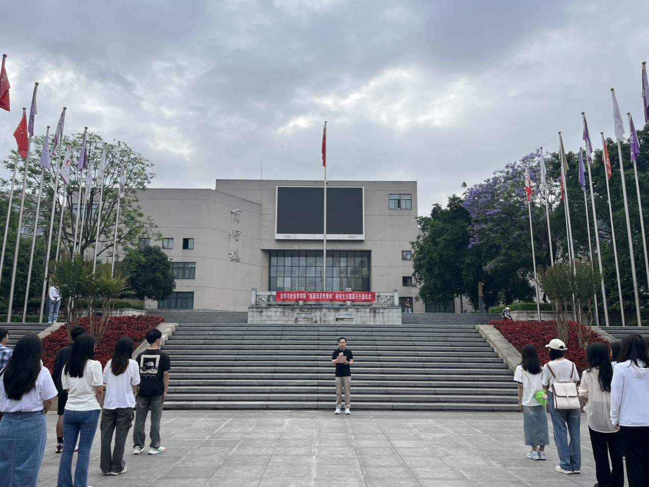 为进一步加强研究生思想政治教育,弘扬爱国主义精神,5月20日早上7:50,ok138cn太阳集团在南岸校区含弘广场举行了以“祖国母亲我爱你”为主题的主题团日升旗仪式。太阳集团tyc9728党委常委、副校长李国军,ok138cn太阳集团副院长刘勇,学团办主任何祖润,研究生辅导员李静兰以及学院全体2023级硕士研究生参加了本次升旗仪式。仪式由2023级社会学硕士研究生吴梦洁主持。