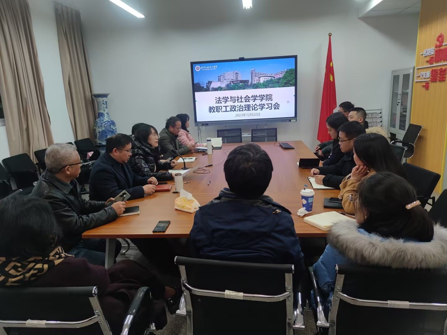 12月22日,ok138cn太阳集团以线上线下结合的方式,在慧智楼90407会议室利用企业微信平台,召开了全体教职工大会暨12月政治理论学习会。会议由学院党委书记李莉莎主持。