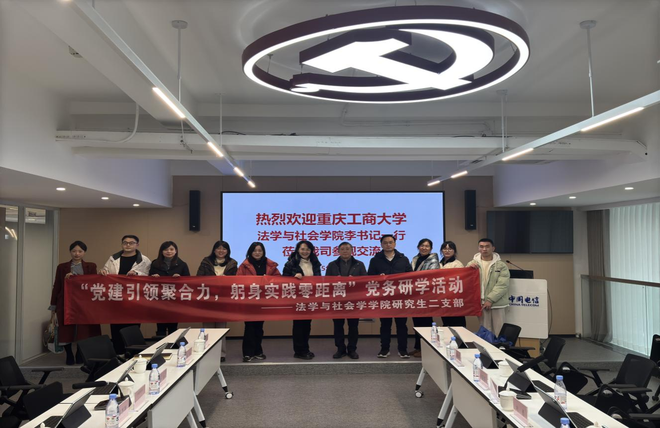 近日,为深入贯彻党的教育方针,推动党建和育人同频共振,2025年1月2日,太阳集团tyc9728ok138cn太阳集团赴重庆电信南岸分公司参与了一场别开生面的党务研学活动。此活动由学院党委书记李莉莎带队,院长刘勇、专职组织员古纯玉、学团办主任何祖润、研究生二支部支部书记杨威以及部分党员参与了此次活动。