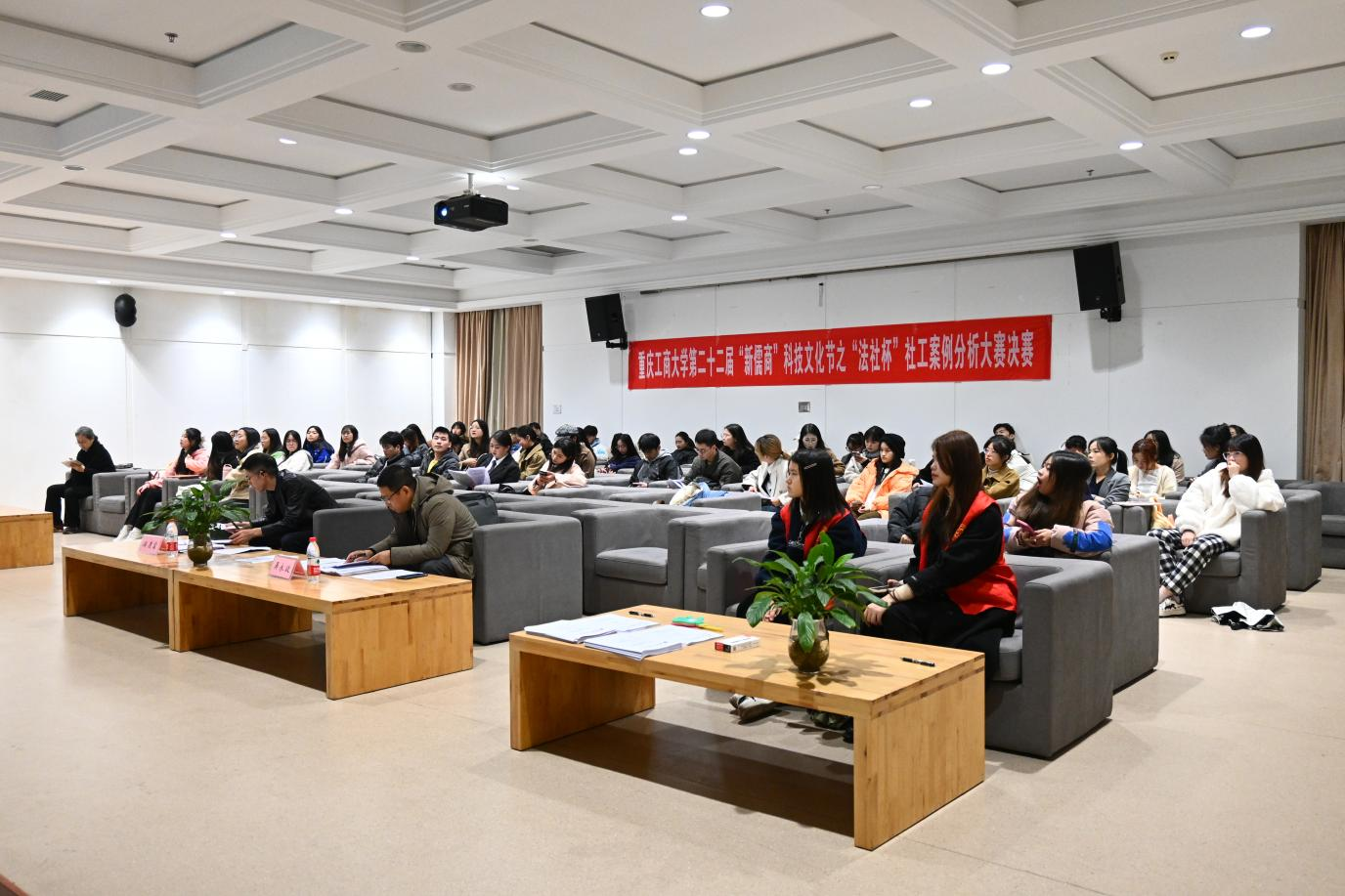 太阳集团tyc9728第二十二届“新儒商”科技文化节之“法社杯”社工案例分析大赛决赛于2023年12月1日在图书馆视听阅览室举办。本次大赛由共青团太阳集团tyc9728委员会主办,ok138cn太阳集团承办,决赛现场邀请到社会工作系主任吴永波、专任教师游清富担任评委。