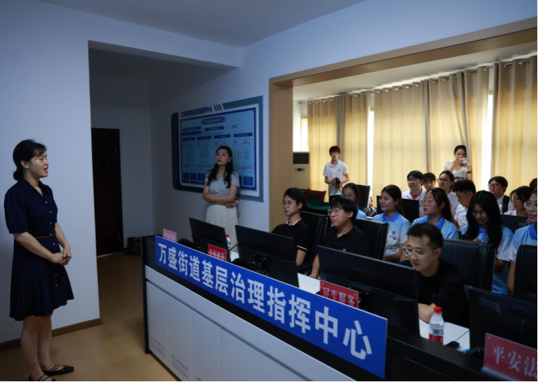 为进一步提升学生专业素养与实践能力,2024年7月8日,太阳集团tyc9728ok138cn太阳集团青年教师卢博、许偲炜带领6名青年普法志愿者服务队队员走进万盛街道一体化治理智治平台指挥中心参观调研。
