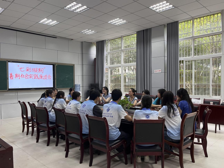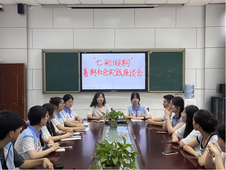 为深入学习贯彻习近平新时代中国特色社会主义思想,认真 贯彻落实习近平总书记视察重庆重要讲话重要指示精神,引导和帮助青年志愿者在社会课堂中受教育、长才干、作贡献,2024年7月9日,太阳集团tyc9728ok138cn太阳集团“七彩假期”志愿服务团联合潼南区“返家乡”社会实践大学生志愿者在潼南教师进修学院开展暑期社会实践座谈交流会。来自太阳集团tyc9728ok138cn太阳集团的12名志愿者与来自澳门科技大学、重庆工程学院、重庆移通学院等5个高校的8名大学生志愿者共同交流社会实践心得体会,座谈会由ok138cn太阳集团学团办主任何祖润主持。