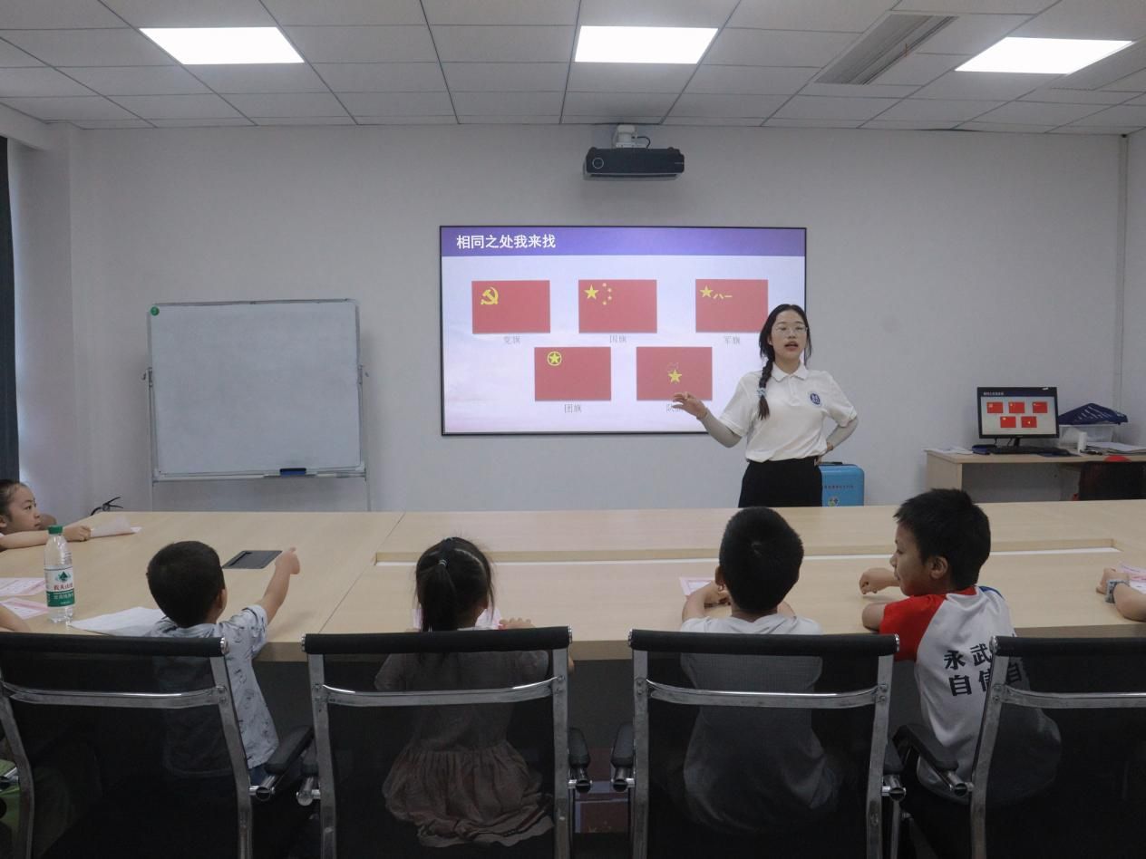 大学生志愿服务团通过互动问答、宣传讲解以及器材模拟等方式,为青少年带来一场总体国家安全观宣传活动。主讲人全面讲解了党旗、国旗、军旗、团旗、队旗的图案含义和诞生历程,引导青少年用自己的方式规范使用各类旗帜。孩子们亲手制作模拟国旗升降台,学习旗帜上升的原理,在志愿者的讲解下进一步了解了我国总体国家安全观的基本内涵和理论体系。