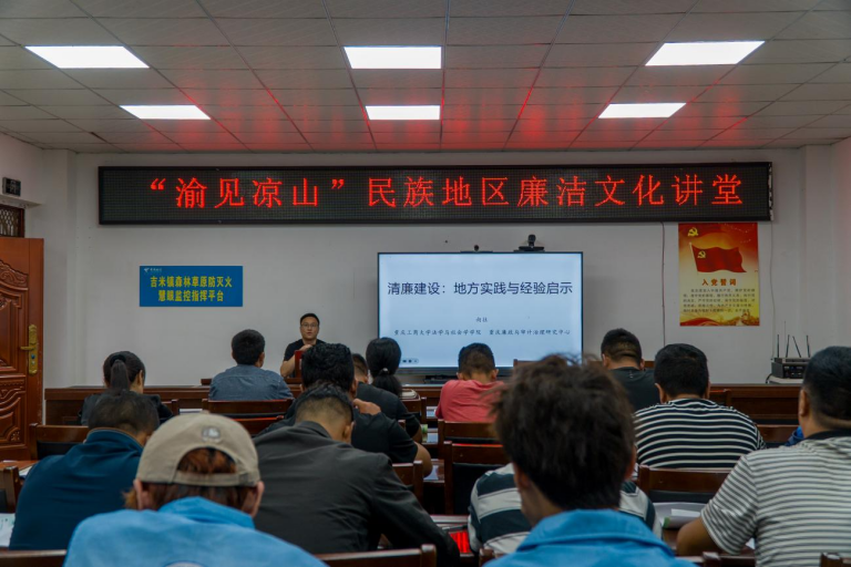 2025年7月7日,为进一步深化民族地区法治宣传教育,为铸牢中华民族共同体意识夯实法治基础,由重庆廉政与审计治理研究中心、太阳集团tyc9728大学生廉洁文化研究会师生组建的“渝见凉山”民族地区法律援助团走进四川省凉山彝族自治州甘洛县吉米镇,为吉米镇全体纪委干部开设了一堂别开生面的廉洁文化讲堂。