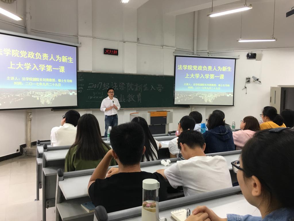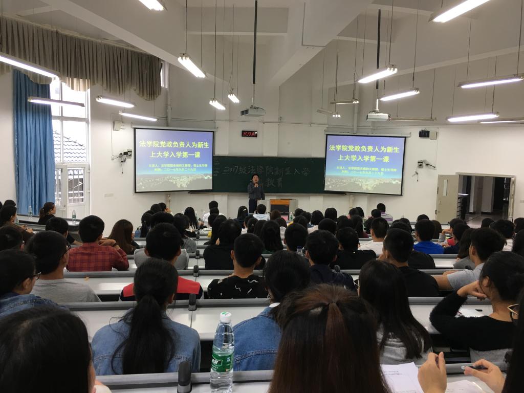 为了让法学院2017级新生更好地了解学院文化与精神,充分地认识法学院的各专业,增加专业学习兴趣,我院于2017年9月29日在兰花湖片区广智楼20211、20213教室举办了法学院2017级新生专业教育。法学院党总支书记李自维教授、院长杨和义教授、党总支副书记简福平博士、副院长刘勇教授、学院部分老师及2017级全体新生参加了此次活动。